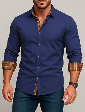Men's Shirt Dress Shirt Casual Shirt Button Up Shirt Plain Wedding Outdoor Blue Black Red Long Sleeve Lapel Summer Spring Clothing Apparel Patchwork