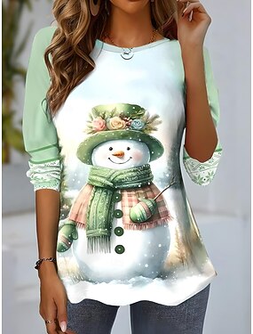 Christmas Women's T Shirt Graphic Vintage Fashion Stylish Long Sleeve Crew Neck Round Neck Regular Tops Daily Weekend Print Light Green Pink Red Blue Orange Fall Winter