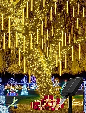 2 In 1 Outdoor Solar Meteor Shower Light String 16Tubes 384 LED Beads Indoor and Outdoor Courtyard Eaves Balcony Porch Wedding Christmas Festival Atmosphere Decorative Lights Remote Control