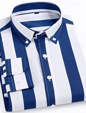 Men's Shirt Dress Shirt Collared Shirt Button Up Shirt Plaid / Striped / Chevron / Round Daily Wear Corporate Clothing White+khaki Pink Wine Navy Blue Long Sleeve Shirt Collar All Seasons Clothing
