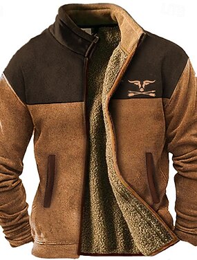 Men's Winter Jacket Fleece Jacket Casual Jacket Vacation Daily Thermal Warm Pocket Fleece Winter Color Block Cow Fashion Streetwear Standing Collar Regular Brown Dark Blue Coffee Jacket