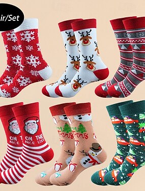 Men's 6 Pairs Multi Packs Socks Running Socks Casual Socks Christmas Socks Multi Color Color Santa Claus Elk Christmas Tree Christmas Vacation Sports & Outdoor Basic Medium Fall Winter Fashion Casual