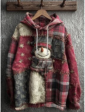Christmas Women's Snowman Snowflake Pullover Hoodie Sweatshirt Graphic Geometric Elegant Warm Active Long Sleeve Hooded Regular Tops Street Dailywear Casual Patchwork Print Red Spring Fall Winter