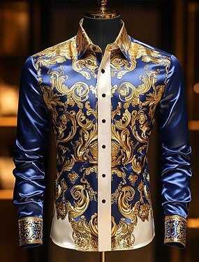 Men's Geometry Shirt Long Sleeve Fashion Streetwear Designer Outdoor Casual Daily Fall & Winter Turndown Print Button-Down White Royal Blue Blue Purple Gold