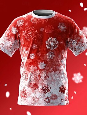 Christmas Men's Snowflake T Shirt Short Sleeve T shirt 3D Print Crew Neck Shirt Daily Designer Artistic Vacation Party Street Red 4 Red 3 Red All Seasons Clothing Apparel S M L XL XXL XXXL