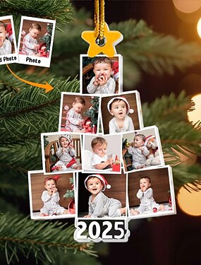 Personalized Christmas Tree Newborn Baby Photo Ornaments Acrylic 2D Custom Picture Frame Decor Christmas Tree Xmas Decoration Hanging Pendant Gifts for Family and Friends
