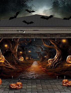 Halloween Garage Door Cover Large Hanging Backdrop Pumpkin Cemetery 3D Dark Punk Gothic Style Party Outdoor Shooting Backgrounds Yard Haunted House Home Decor