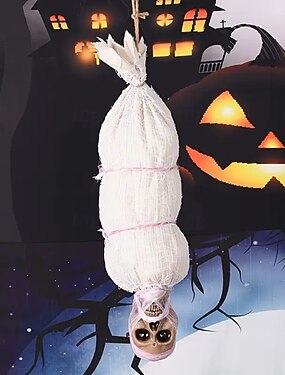 Halloween Hanging Mummy Decoration Prop - Horror Inverted with glowing red eyes fabric battery powered (excluding AA batteries) - Ideal for Horror Houses and Festival Decorations Festival Decorati