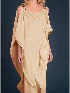 Sheath / Column Floor Length Party Dress Cocktail Dress Half Sleeve Jewel Neck Elegant Plus Size Wedding Guest Chiffon Mother of the Bride Dress with Beading Cascading Ruffles