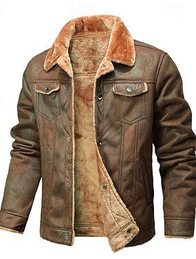 Men's Faux Leather Jacket Fleece Jacket Biker Jacket Motorcycle Jacket Vacation Daily Windproof Warm Pocket Fall Winter Plain Fashion Classic Lapel Regular Black Khaki Coffee Jacket