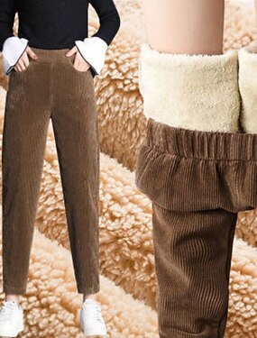 Women's Fleece Pants Corduroy Pants Slacks Streetwear Casual Full Length Natural Plain Pocket Elastic Waist Comfortable Outdoor Vacation Daily Wear Grey Black Coffee Winter Regular Fit