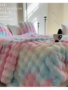 Tuscany Tie-Dye Faux Rabbit Fur Blanket, Double-Layer Thick Plush Throw, Long Pile Fleece Blanket for Office and Home