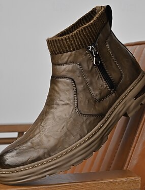 Men's Brown Zipper Ankle Boots – Comfortable Slip-On Casual Fashion Shoes for Everyday Wear and Travel