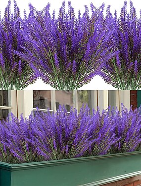 24 Bundles Artificial Lavender Fake Flowers Faux Plastic Plants for Home Wedding Kitchen Garden Patio Window Box Office Table Centerpieces Indoor Outdoor Decor
