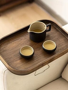 Foldable Solid Wood Sofa Arm Tray - Protector & Serving Table Mat for Living Room, Coffee, Tea, Snacks - Ideal for TV Snuggle Sessions