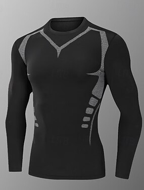 Men's Compression Shirt Fleece Base Layer Workout Tops Long Sleeve Top Athleisure Solid Colored Warm Basketball Running Yoga Sportswear Activewear black+dark grey Black Light Black
