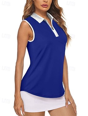 Women's Graphic Sport Shirt Golf Polo Shirt Tennis Shirt Sleeveless Zipper High Elasticity Moisture Wicking Breathable Tennis Golf Pickleball Turndown Zip Collar Shirt Top White Blue Tennis Clothing