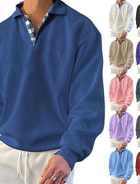 Men's Hoodie Pullover Hoodie Sweatshirt Quarter Zip Sweatshirt Yellowish brown Black Pink Navy Blue Dark Green Half Zip Lapel Plain Patchwork Color Block Sports & Outdoor Casual Daily Streetwear Cool