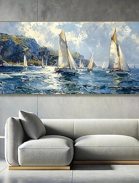 Handmade Oil Painting Canvas Wall Art Decoration Abstract Sailing Boat Landscape for Home Sofa Background Entrance Hall Decor Stretched Frame Hanging Painting/Rolled Frameless Unstretched Painting