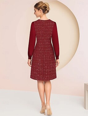 A-Line Mermaid / Trumpet Knee Length Cocktail Dress Long Sleeve Crew Neck Elegant Vintage Party Wedding Guest Polyester Mother of the Bride Dress with Sequin Color Block