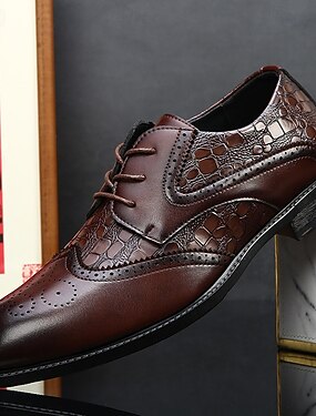 Men's Brown Faux Leather Crocodile-Textured Oxfords – Classic Brogue Style for Christmas and Formal Occasions
