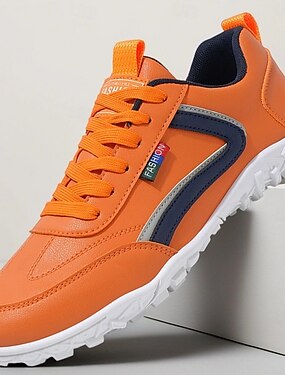 Men's Orange Lightweight Running Sneakers with Contrast Navy Stripes, Breathable Sports Shoes for Gym, Outdoor Training and Daily Walking