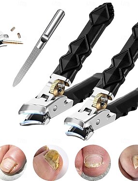 Medical Grade Orthoclip Toenail Clippers Set - Wide Jaw & Angled Tip Clippers for Thick & Ingrown Toenails, with Safety Lock & Nail File, for Easy Elderly & Diabetic Foot Care Kit