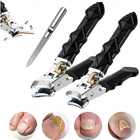 Medical Grade Orthoclip Toenail Clippers Set - Wide Jaw & Angled Tip Clippers for Thick & Ingrown Toenails, with Safety Lock & Nail File, for Easy Elderly & Diabetic Foot Care Kit