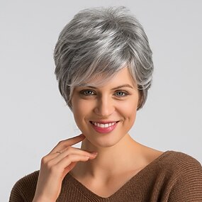 Human Hair Blend Wig Short Natural Straight Pixie Cut Blonde Red Mixed Color Fashionable Design Easy dressing Comfortable Machine Made Women's Dark Wine Black / Grey Beige Blonde / Bleached Blonde 8