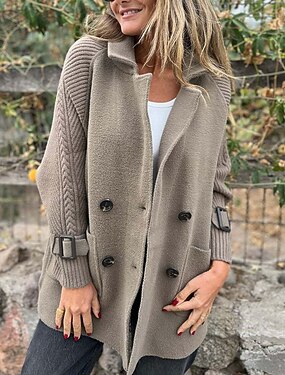 Women's Sweater Cardigan Streetwear Casual Solid Color Shirt Collar Pocket Buttons Flared sleeves Long Sleeve Long Tops Knit Daily Holiday Going out Black White Fall Winter