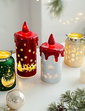 LED Flameless Glass Candles,Christmas LED Pillar Candles Battery Operated,Tea Lights Candles with Xmas Snowflake, Fake Candle, Christmas Desktop Decorative Lights & Home Decor