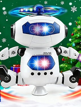 Christmas Gifts for Grandkids Boys, Musical Walking Dancing Robot Toy For Kids Flashing Lights 360 Body Spinning Toddlers Boys Girls Fun Toy Figure (Model 1)
