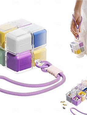 Magnetic Pill Organizer Cube with Lanyard - 8-Tier Magnetic Lid, Color-Coded Compartments & Lids, Stackable Medication Storage Box for Travel, Home, Work, Durable Plastic Pill Dispenser with Lanyard