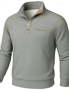 Men's Sweatshirt Corduroy Fleece Sweatshirt Pullover Button Up Hoodie Black Army Green Navy Blue Blue Khaki Standing Collar Plain Patchwork Color Block Textured Sports & Outdoor Casual Daily