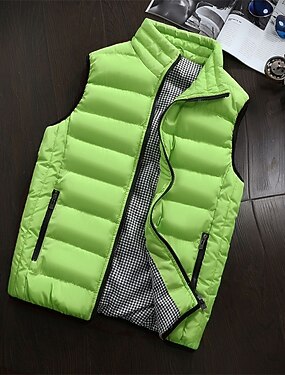 Men's Puffer Vest Vest Gilet Vacation Daily Date Fashion Casual Fall Winter Pocket Polyester Warm Comfortable Solid Color Zipper Stand Collar Regular Fit Black Light Green Wine Red Vest