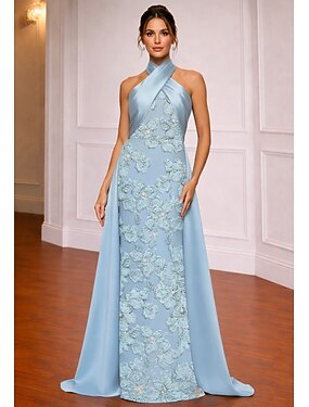 Sheath Column Floor Length Formal Dresses Evening Gown Prom Dresses Elegant Sleeveless Halter Neck Formal Wedding Guest with 3D Flowers