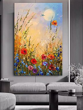 Hand painted Wildflowers Painting handmade 3D Texture Blooming Flower oil Painting Canvas Extra Large Size Flora oil painting Wall Art Botanical oil painting Wall Art Decor Rose Art