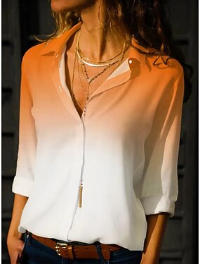 Women's Shirt Floral Color Gradient Casual Long Sleeve Shirt Collar Regular Tops Work Daily Buttons Print Yellow Spring Fall Winter Spring, Fall, Winter