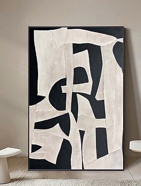 Mintura Hand Painted Abstract Beige Black Texture Oil Paintings on Canvas Modern Abstract Wall Art Picture For Home Decoration Ready To Hang With Stretched Frame