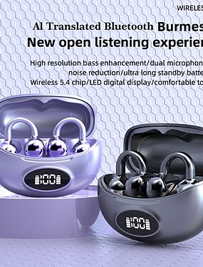 AI Wireless Headphones Sports Bluetooth 5.3 Hi-Res Ultra Open Earbuds earrings Clip Translation Earbuds IPX5