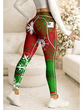 Women's Christmas Red Leggings Stretchy Snowflake Moisture Wicking Yoga Fitness Tennis Tights Stretchy Spandex Winter Sports Activewear Cropped Leggings