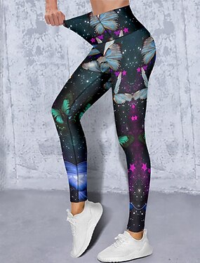 Women's Yoga Pants Butt Lift Tummy Control High Waist Gym Workout Running Fitness Cropped Leggings Butterfly Dark Navy Purple Fall Winter Sports Activewear High Elasticity Skinny