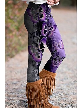 Women's Leggings Vacation Vintage Ethnic Style Full Length High Waist Graphic Butterfly 3D Print Quick Dry Breathability Soft High Elasticity Outdoor Home Causal Yellow Blue Purple Green Fall Slim Fit