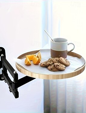 Foldable Telescopic Tray Table with Floating Shelves - Adjustable Height, Portable Compact Design for Bedside, Side, or Floor Use, Durable Steel Frame & Wooden Top, Space-Saving Storage Solution, Mini