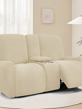 3-Seater Reclining Sofa Cover with 5x5 Grid Stitch Design - Three-Person Lounge Couch Cover with Low Back and Modern Style