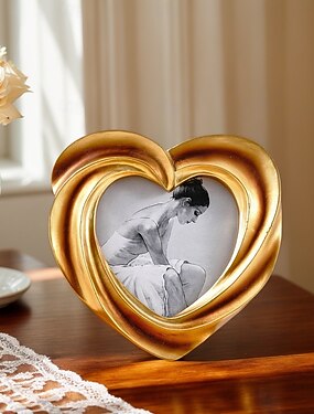 Gold Cream Heart-Shaped Embossed Resin Photo Frame – Warm Home Décor for Family Photos & Photography Props