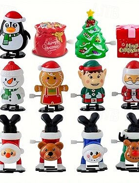 12Pcs Christmas Wind Up Toys, Santa Claus Walking Figures, Clockwork Xmas Cartoon Figurines, Holiday Party Favors, Stocking Stuffers for Kids
