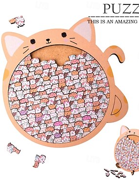 Cat-Themed Stack Puzzle, Unique Irregular Shaped Wooden Jigsaw, High Difficulty Brain Teaser, Educational Spatial Challenge, Family Interactive Fine Puzzle, Premium Quality Plywood Material