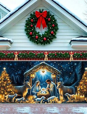 Christmas Tapestry Garage Door Cover Large Hanging Backdrop Window Cute 3D Party Outdoor Holiday Shooting Backgrounds Yard Home Decor