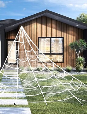 Halloween Spider Web 22.9 X 18 Ft Triangle Web with Gutter Hook Set White Halloween Spider Web with Gutter Hook Set Easy to Decor Outdoor Yard